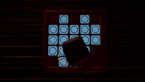 The sense of impact is considered to be very important as the game is about hammering tiles after all. Hämmeri has a couple of different effects to imply collisions and impacts.Whenever the hammer hits the tiles on the board a set of sparks is released. The spark effect is done with a simple particle system. Due to it being a frequently appearing effect, all the values are randomized in every instance to make it appear unique.Aside from collision based effects, there is a light shine effect that appears on the correctly placed tiles whenever the player comples a pattern. The effect is also done with a particle system with streched sprites having zero velocity on spawn.