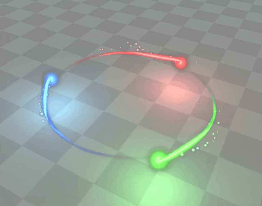 One of the more interesting effects in Hämmeri is the ball of light accompanied by a trail. This effect appears whenever a pattern is completed to indicate success and the connection between the board and the fire creature.The effect is composed of two separate particle systems, the ball of light and a smaller sprite emitter. Additionally, two trails are created from the origin point, adding color variation and layers to the trail.The flying path of the effect is created with a visual bezier curve plugin for Unity. The selected path is randomized out of the three created options.